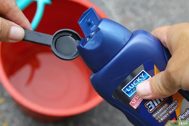 ให้ผสมแชมพู 2 ช้อนชาในถังน้ำที่บรรจุน้ำ 2 แกลลอน (ประมาณ 8 ลิตร). เวลาเช็ดหรือขัดถู ให้ใช้ผ้านุ่มๆ เพื่อถนอมสีรถ และอย่าใช้แชมพูเยอะไป เพราะน้ำยาทำความสะอาดแรงๆ ที่ไม่ค่อยเจือจางสามารถกัดสีรถได้เลย