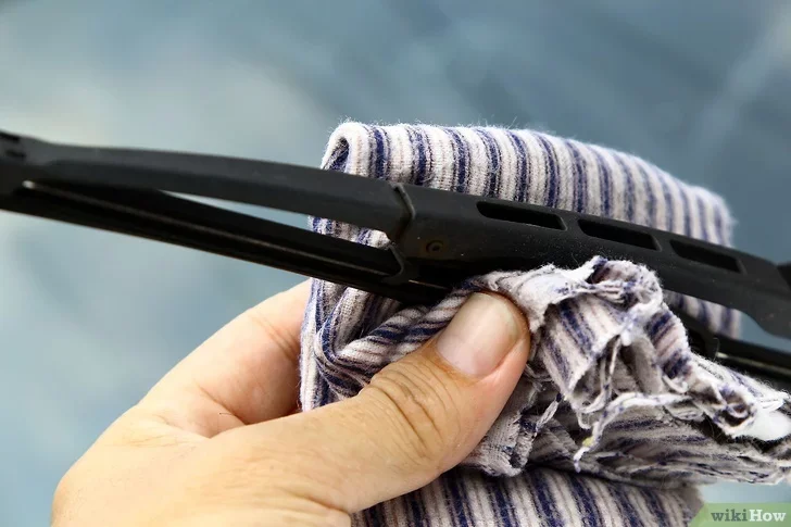 เอาผ้าขนหนูหรือผ้าขี้ริ้วชุบแอลกอฮอล์ ถือที่ปัดน้ำฝนไว้ แล้วรูดผ้าแบบเน้นๆ ไปตามยางของที่ปัดน้ำฝน.